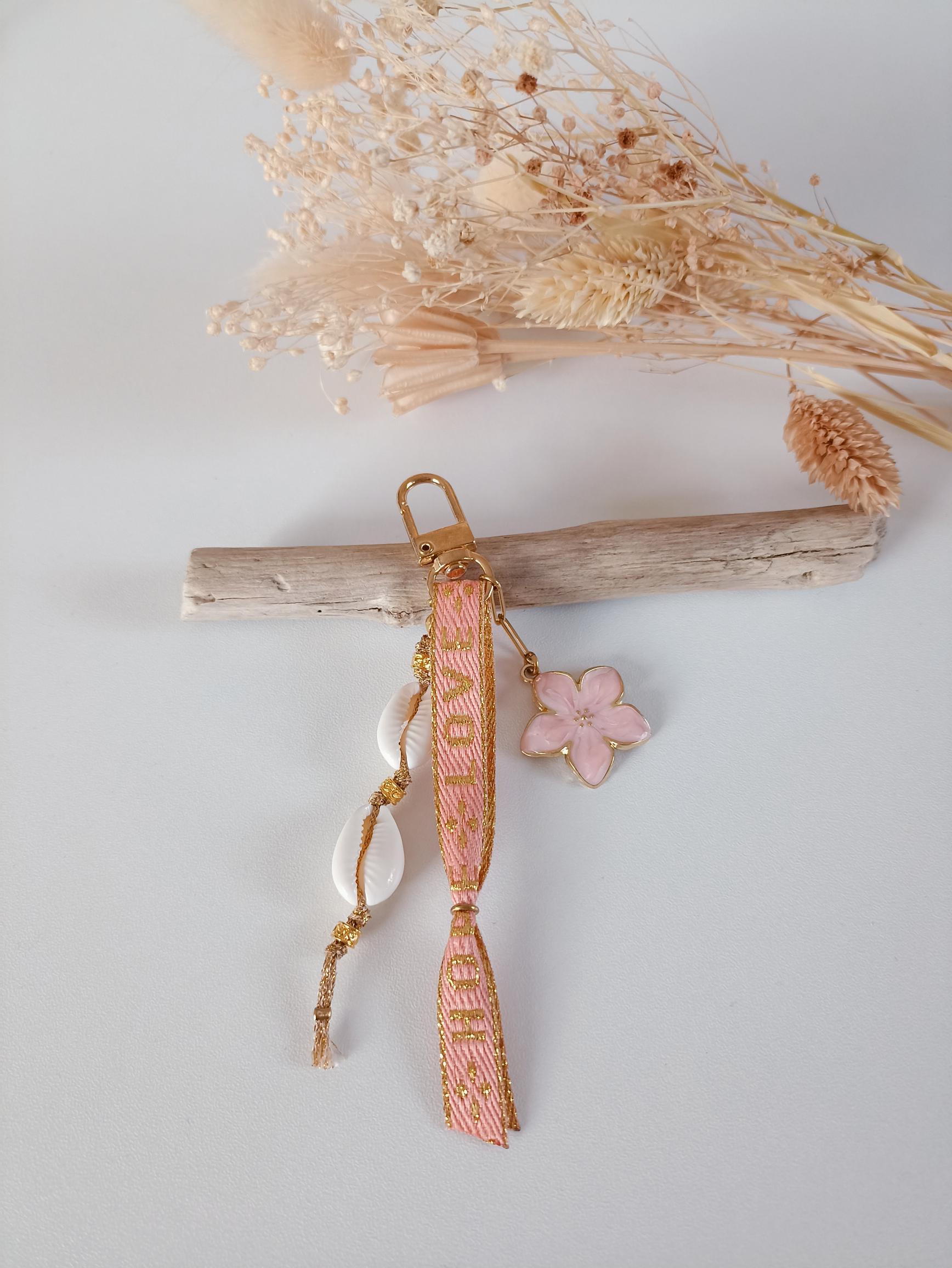Taille : environ 12 cm, breloque fleur : 2,5 cm