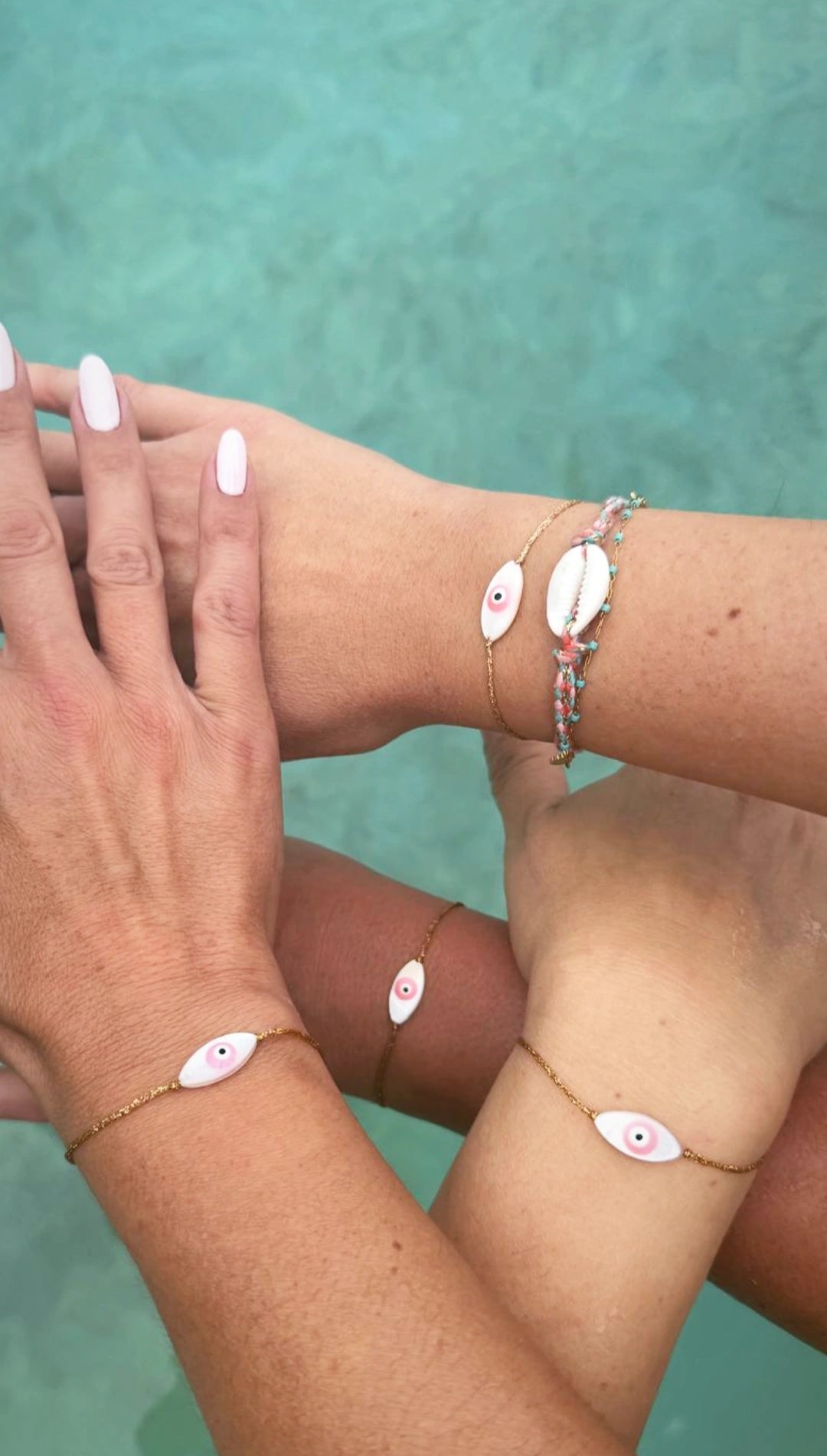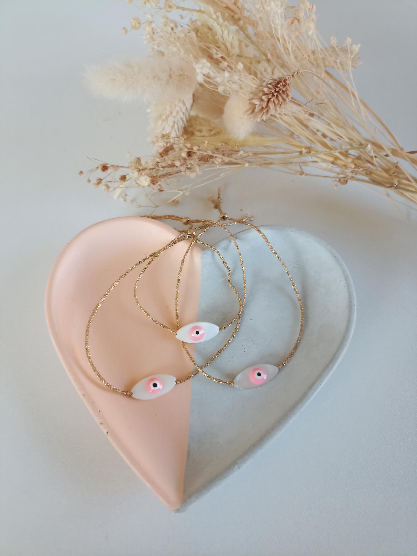 Un bijou qui dit tout : style, simplicité, et bonnes vibrations garanties avec son œil protecteur rose
