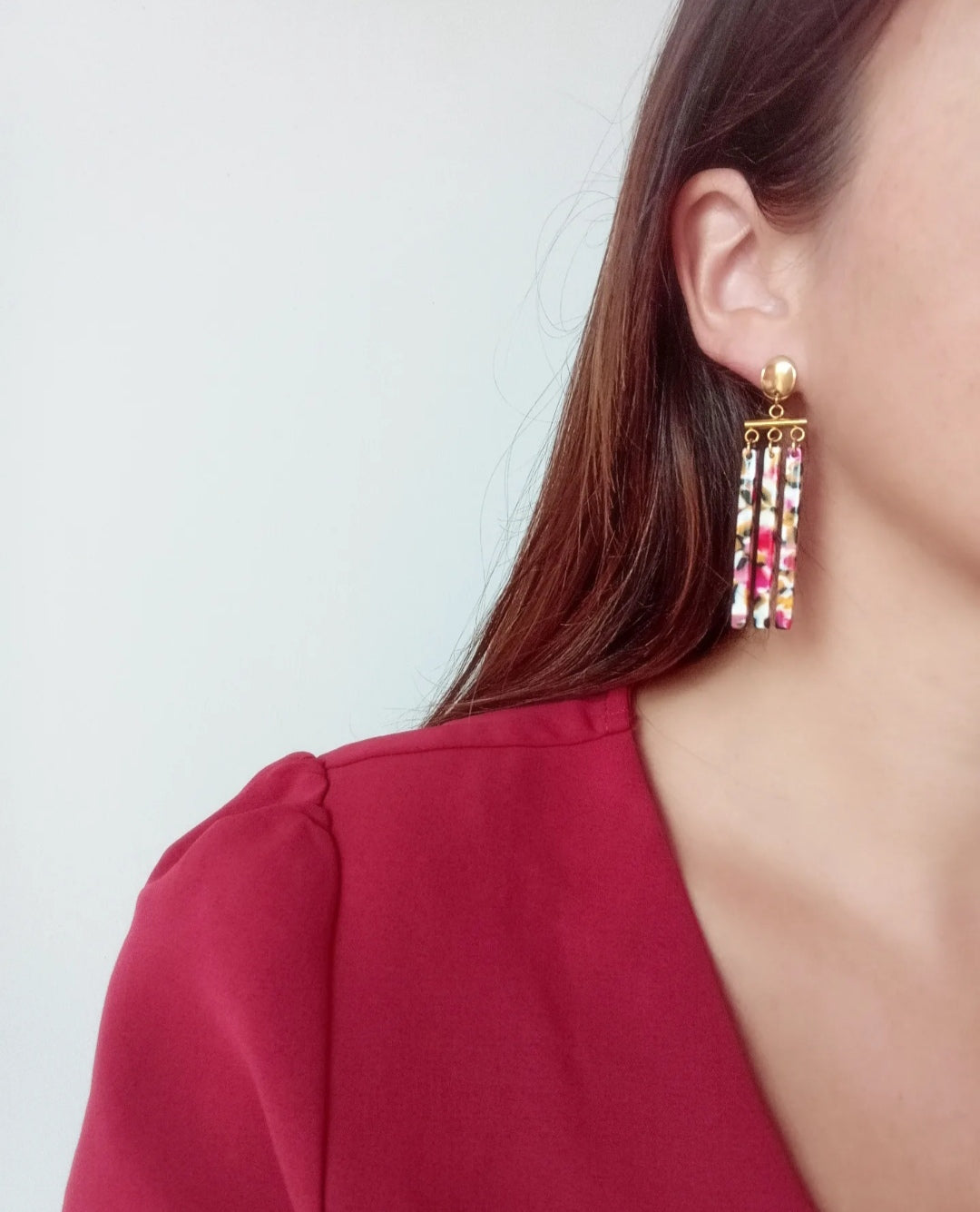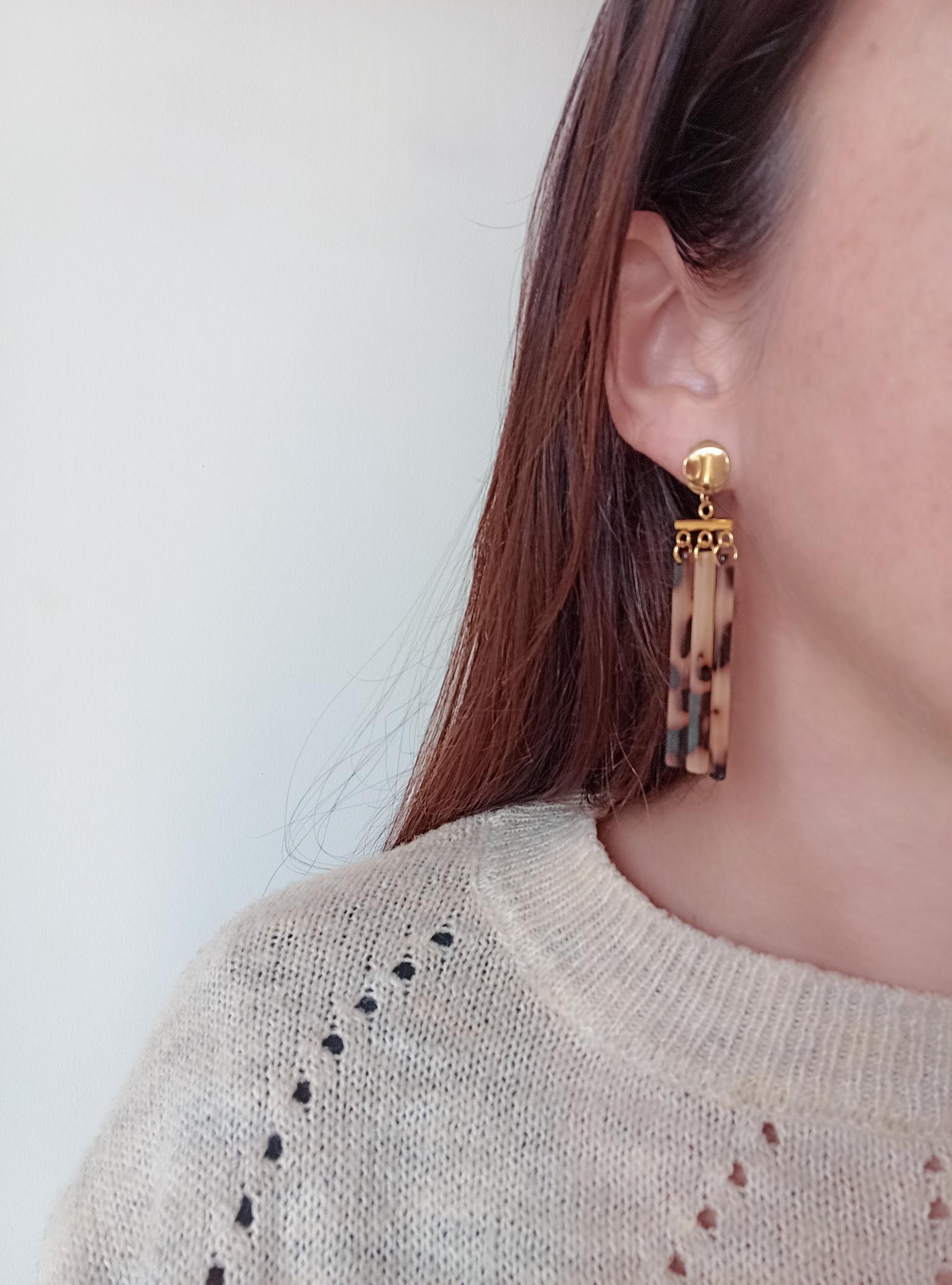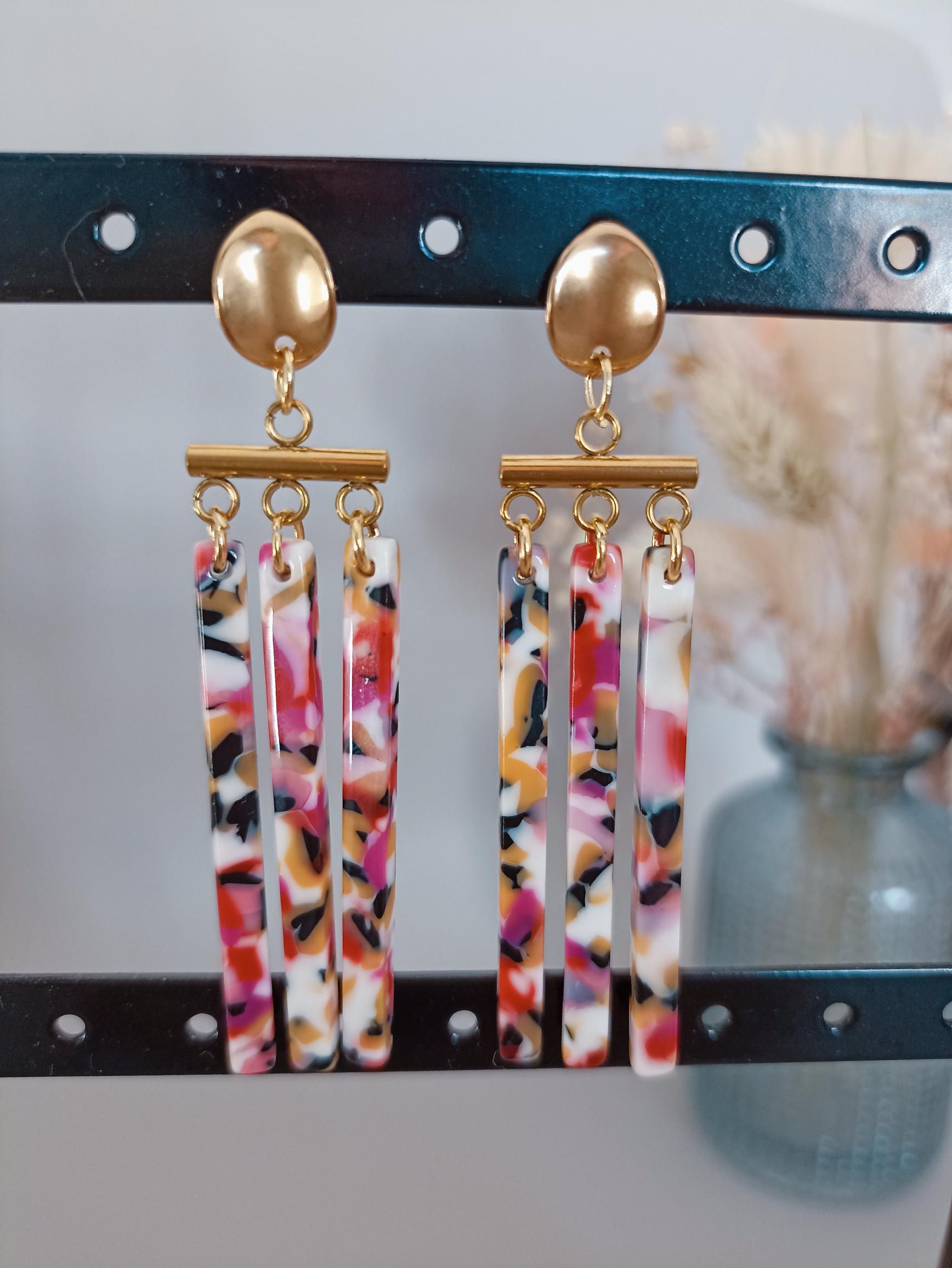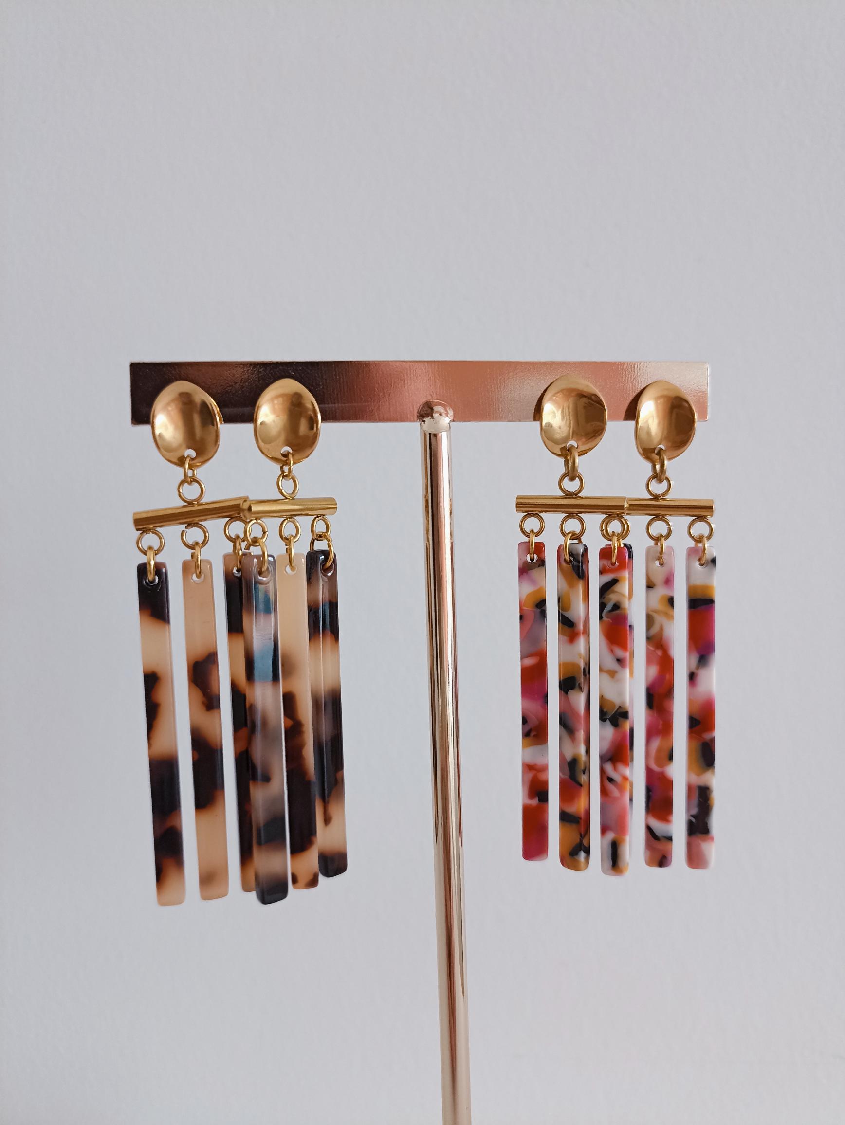 Découvrez nos superbes boucles d'oreilles composées de tubes multicolores ou marrons en acétate. Parfaites pour égayer votre style avec une touche moderne et élégante.