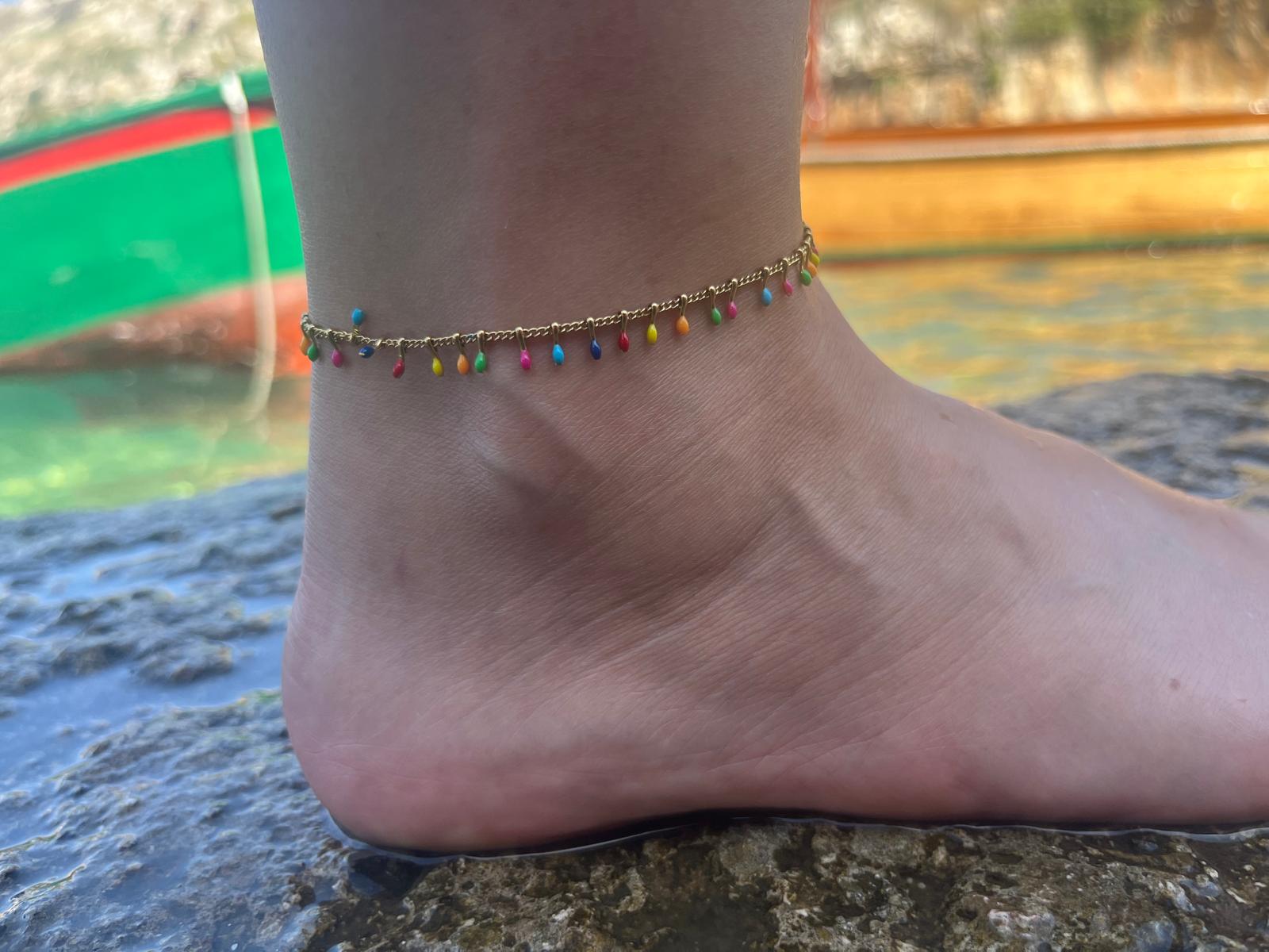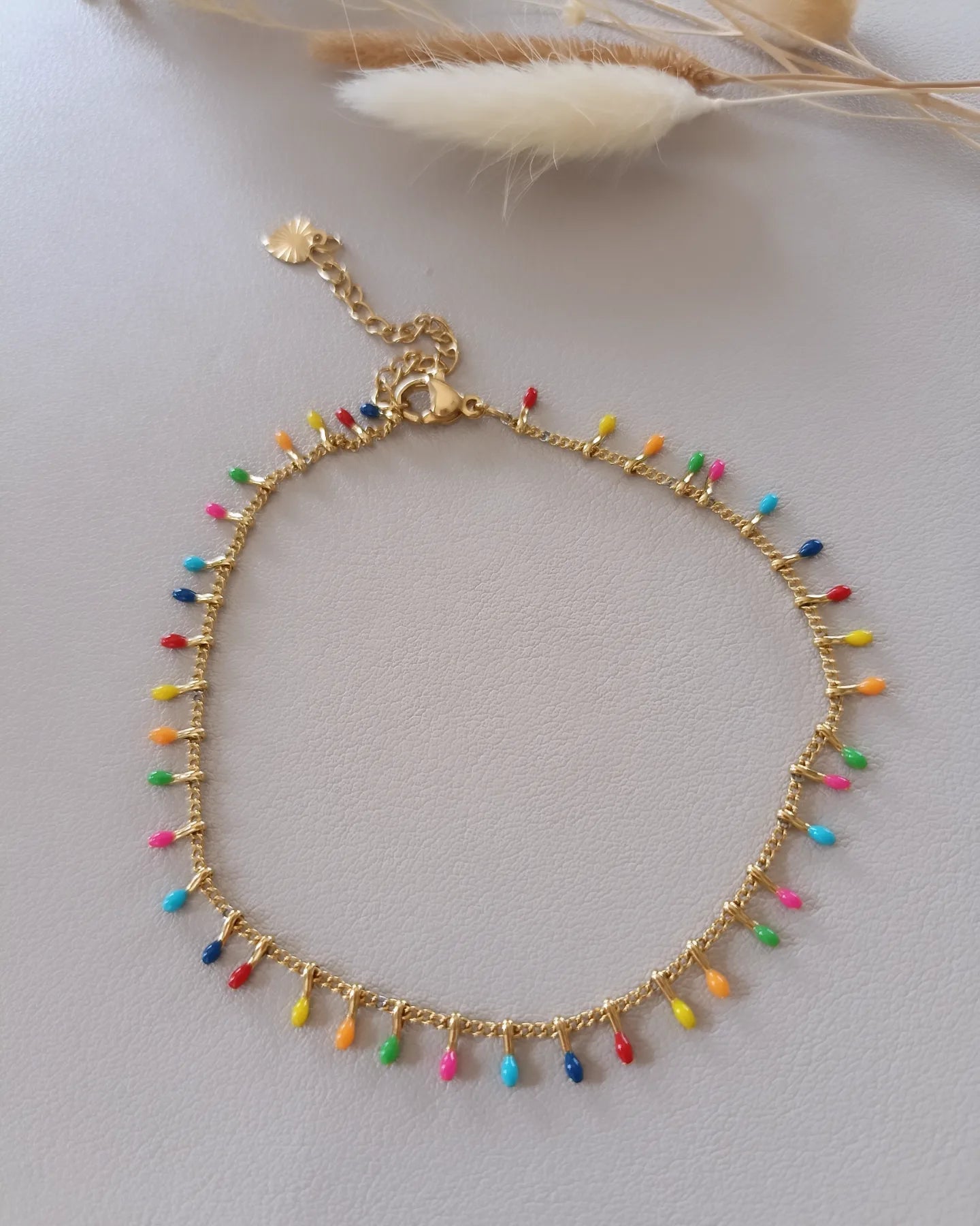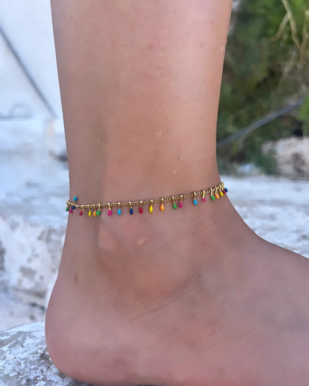 Chaîne de cheville résistante, parée de clous multicolores scintillants, Parfaite pour les journées ensoleillées et les soirées estivales.