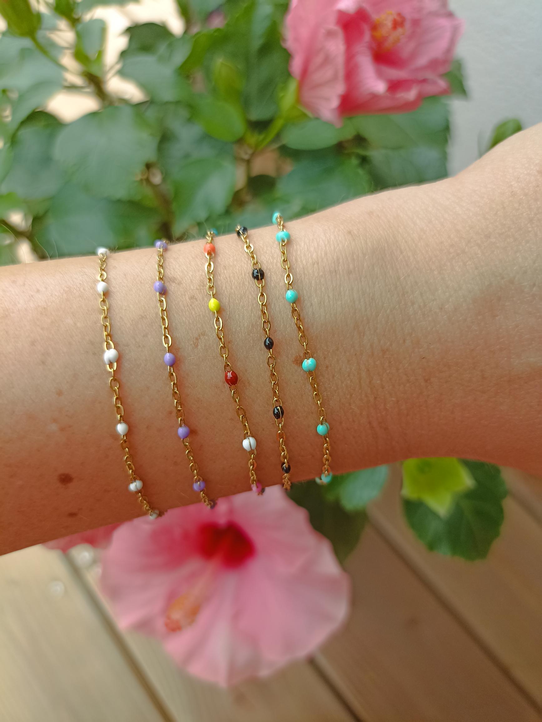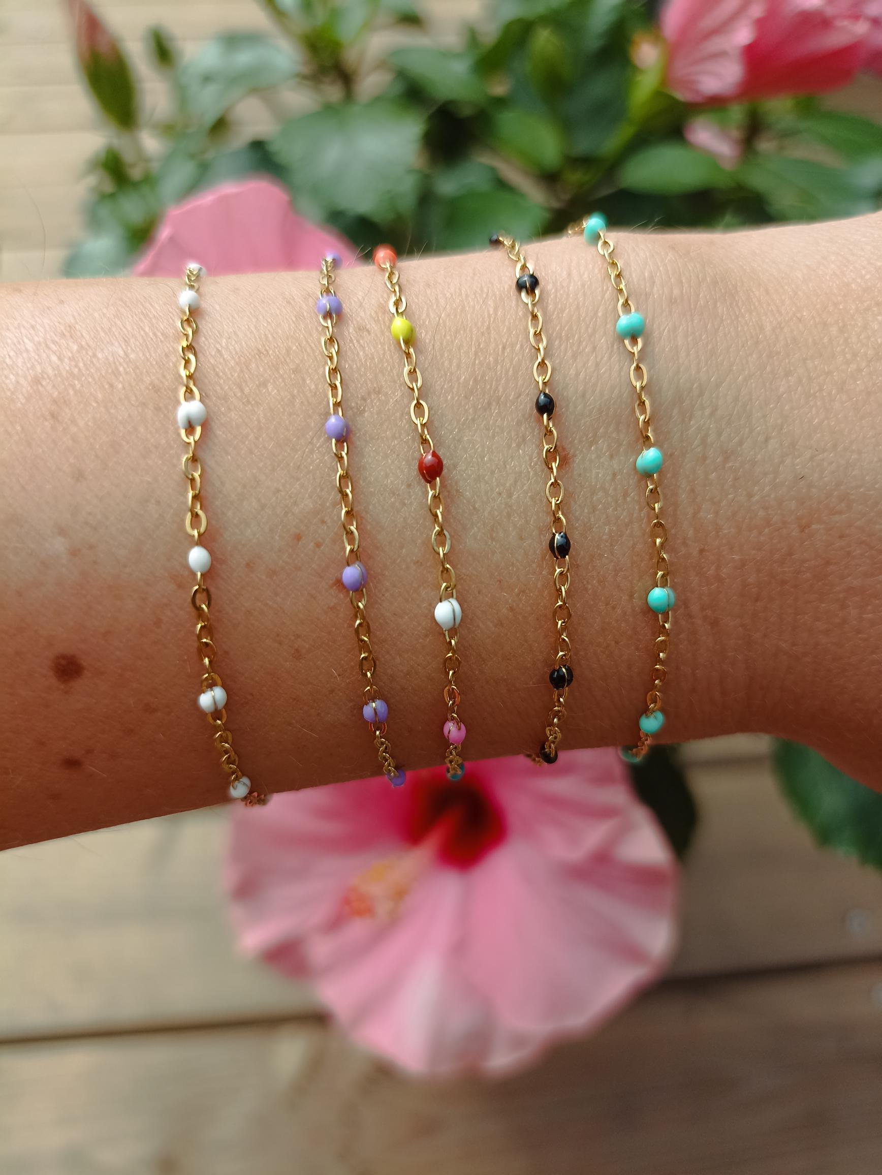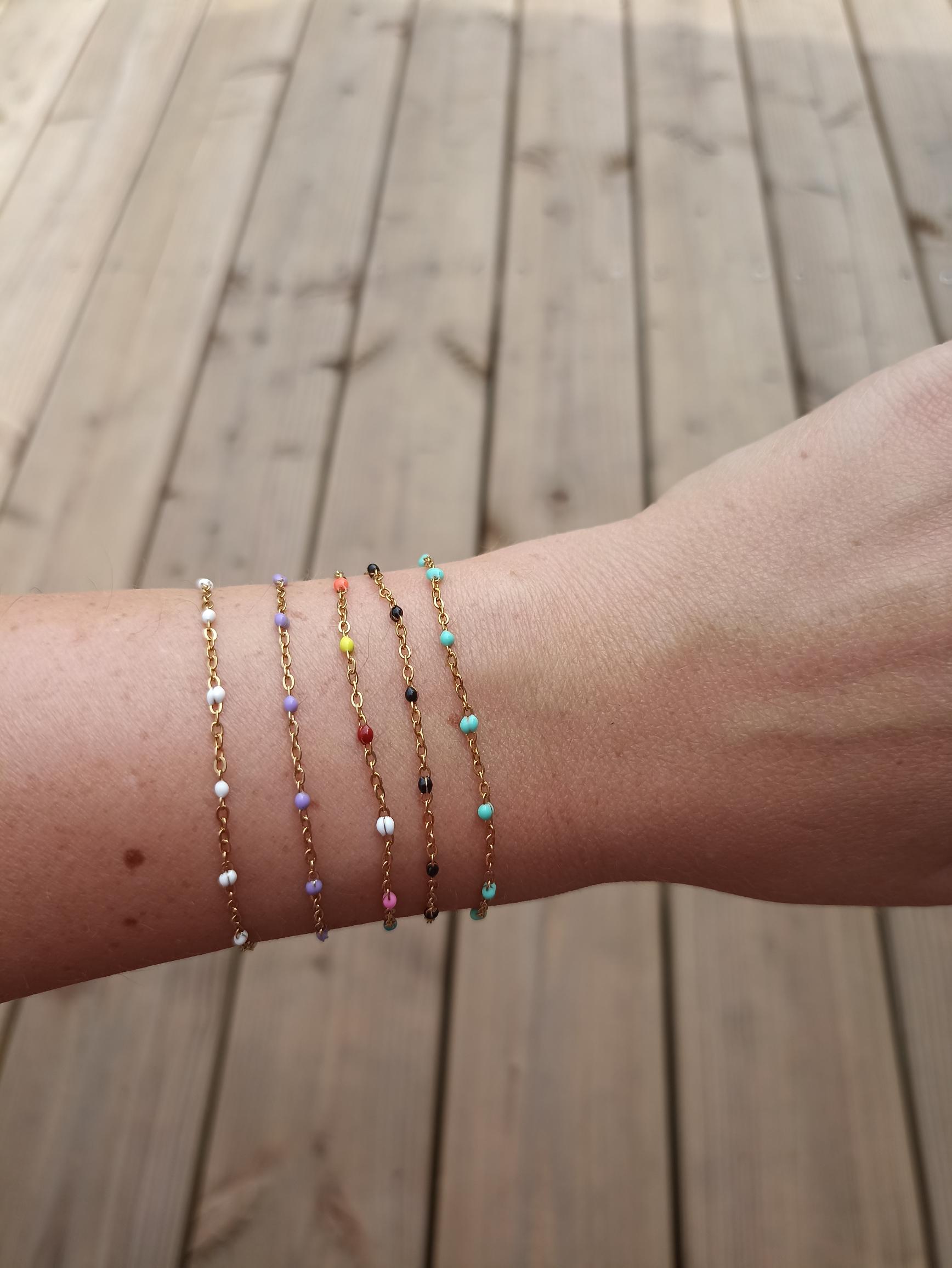 Apportez une touche de fraîcheur à votre look estival avec ce bracelet en acier inoxydable, agrémenté de détails en résine colorée. Ses teintes vives et éclatantes sont parfaites pour illuminer vos tenues d'été. Ce bijou est le compagnon idéal pour les journées ensoleillées et les soirées festives. Commandez-le dès maintenant pour un été en beauté !