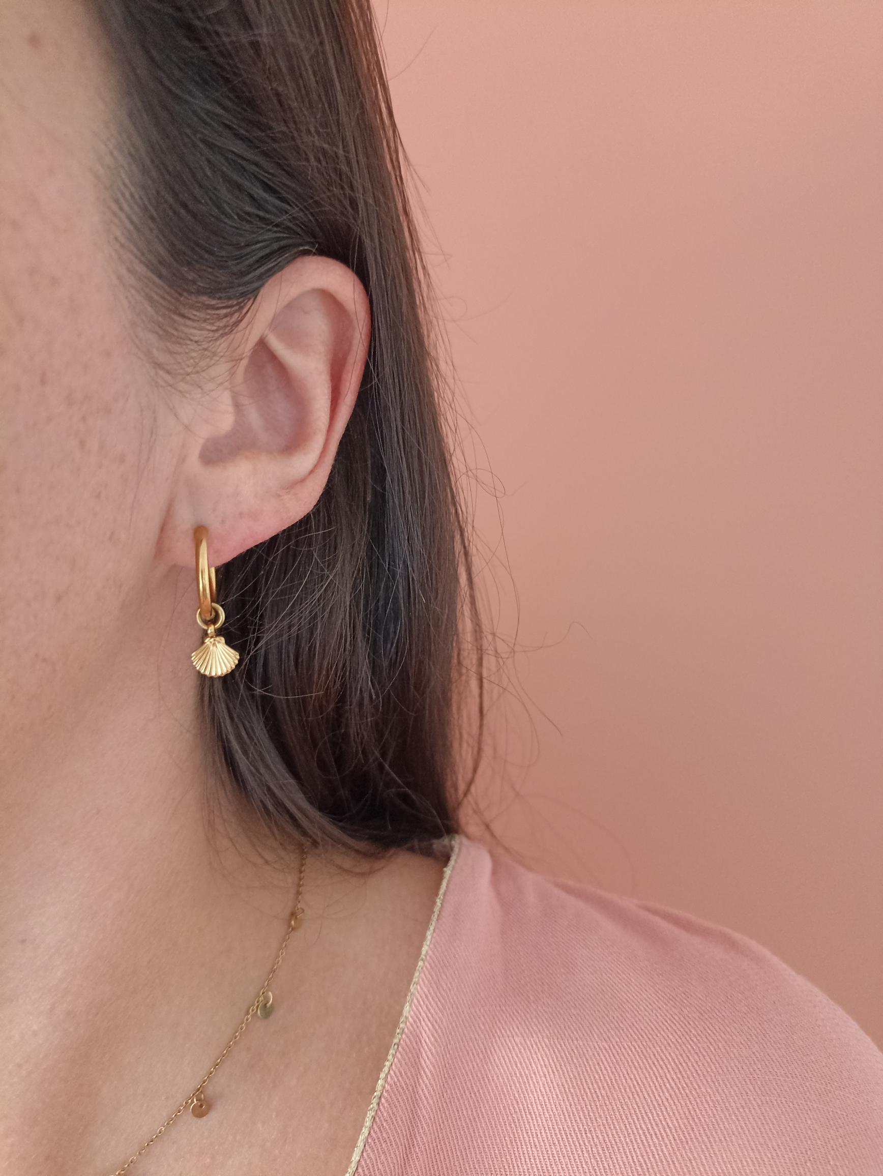 Boucles d'oreilles mini créoles dorées avec pendentif – une touche bohème et estivale, parfaite pour sublimer vos looks ensoleillés