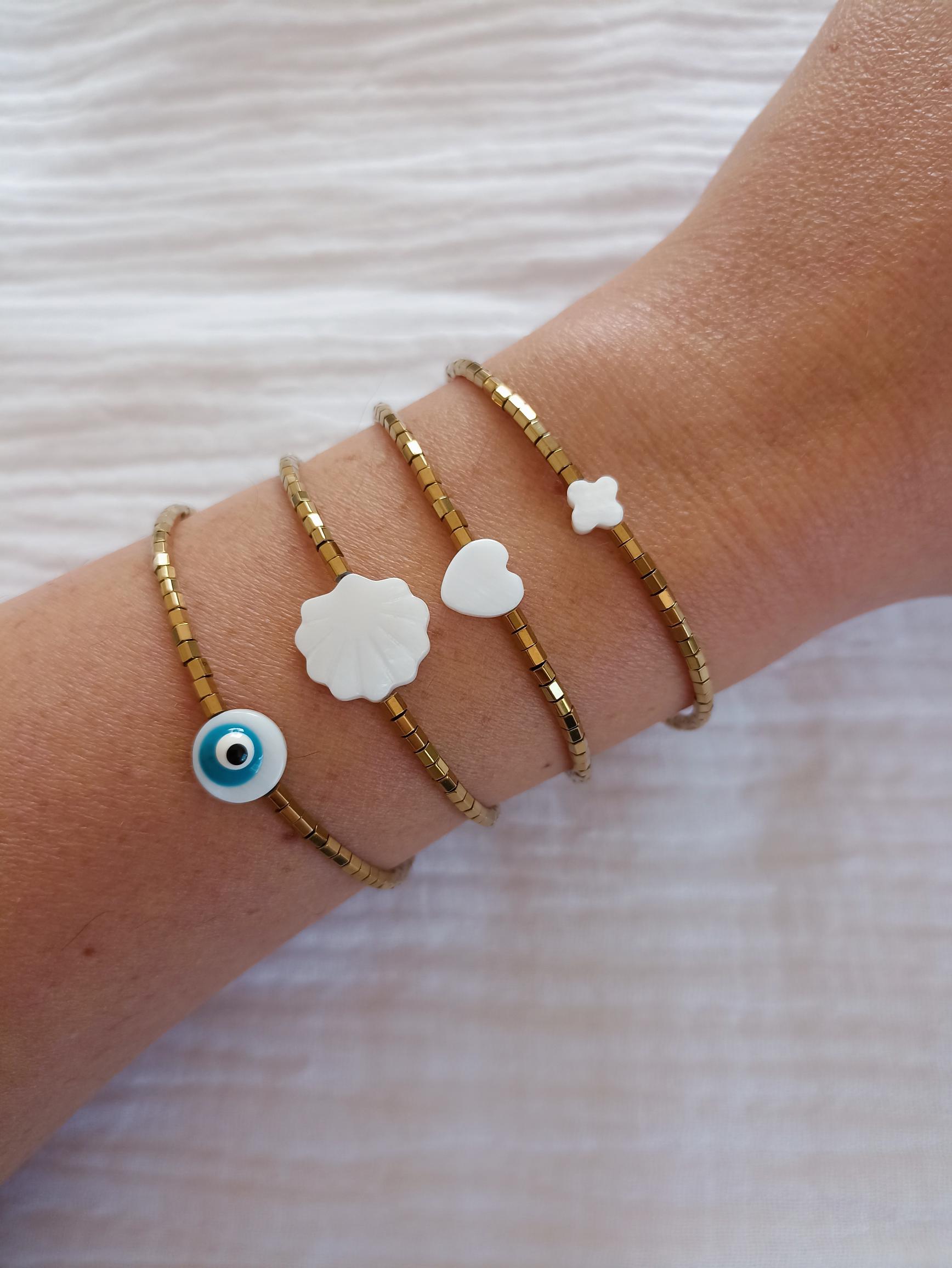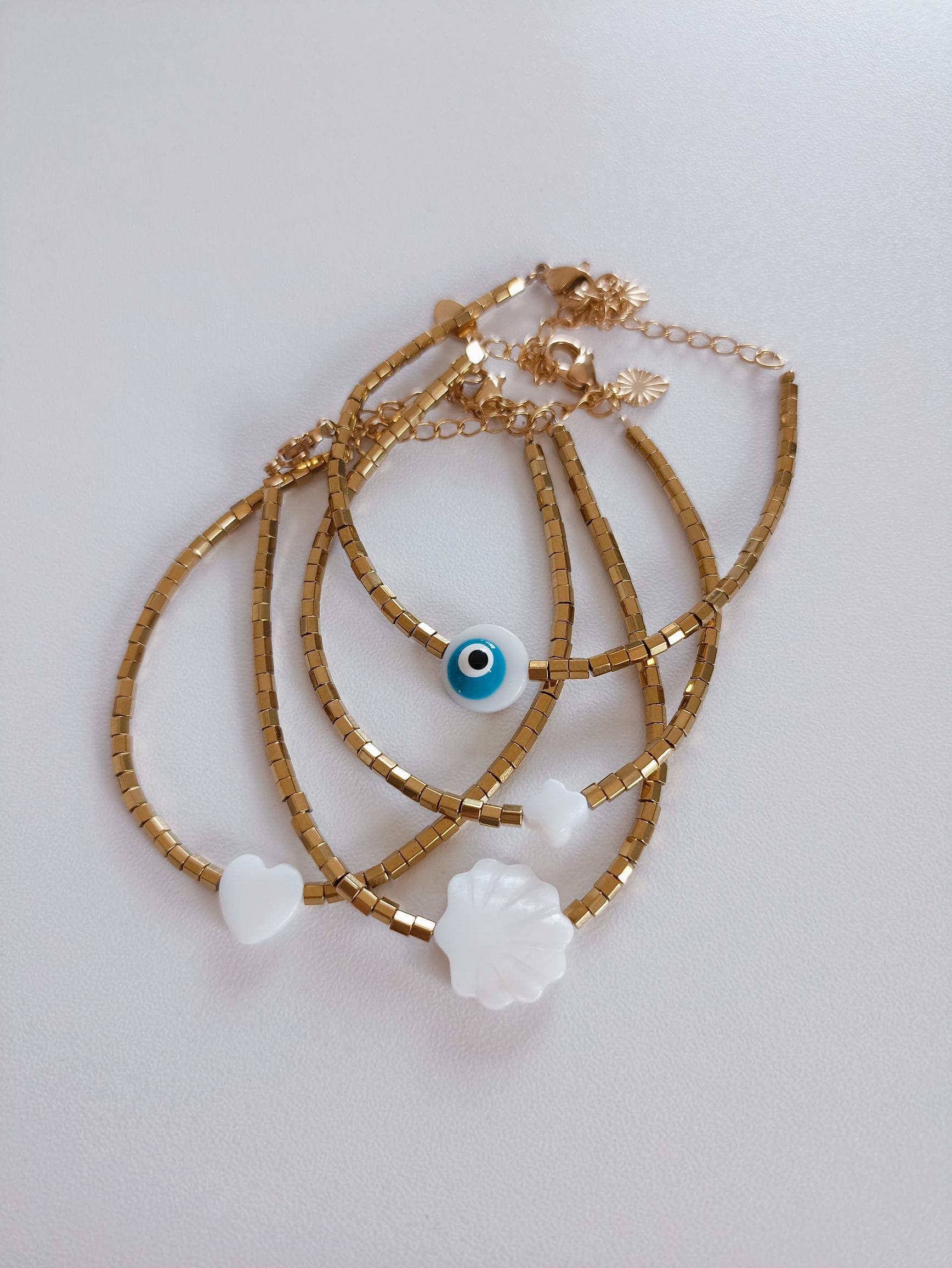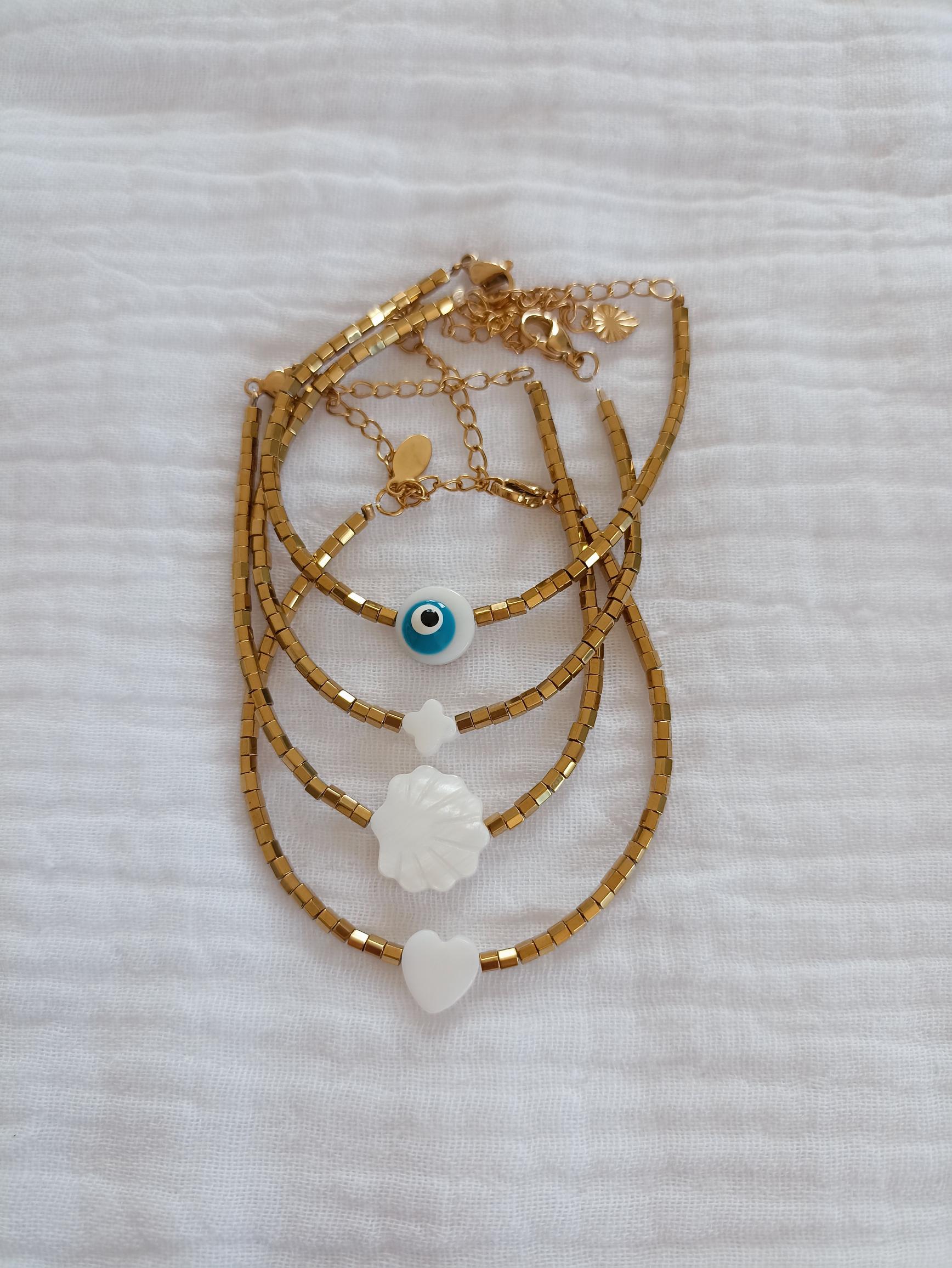 4 choix de perles : Œil protecteur, Etoile, Coquillage, Cœur.