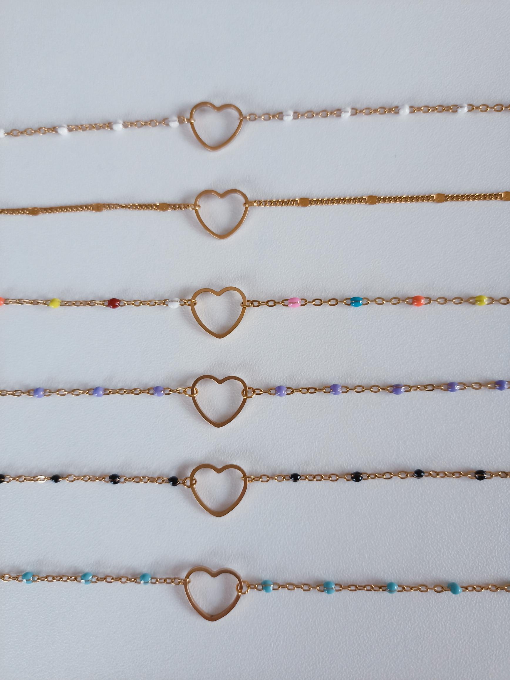 Chaîne avec détails en résine (6 coloris disponibles) ornée d'un cœur, parfait pour ajouter une touche d'amour à votre tenue ou offrir un symbole inoubliable à quelqu'un de spécial.