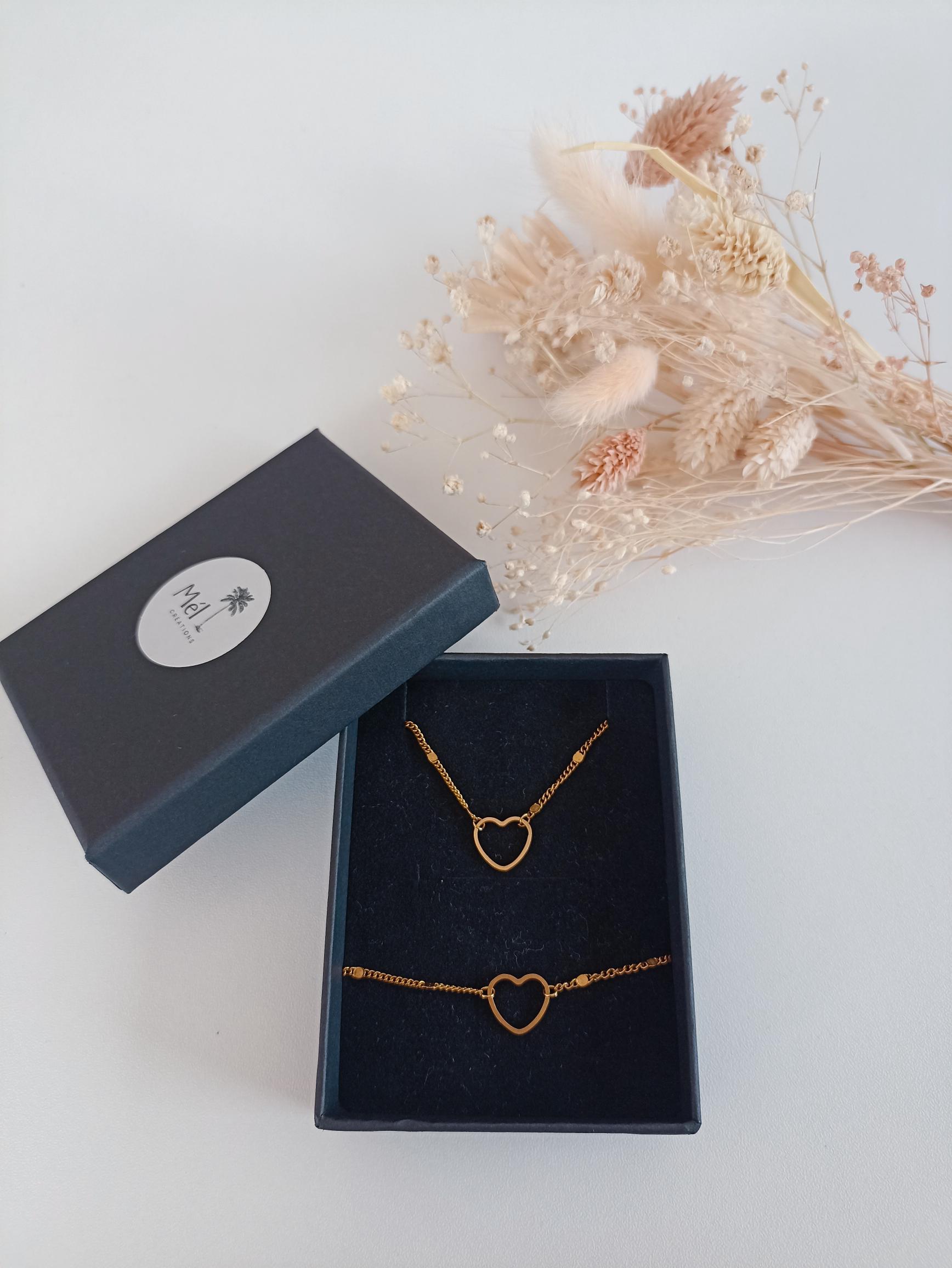 La parure comprend un collier et un bracelet de la même couleur, qui sera livrée dans un écrin et comme toujours un pochon accompagnera votre commande.