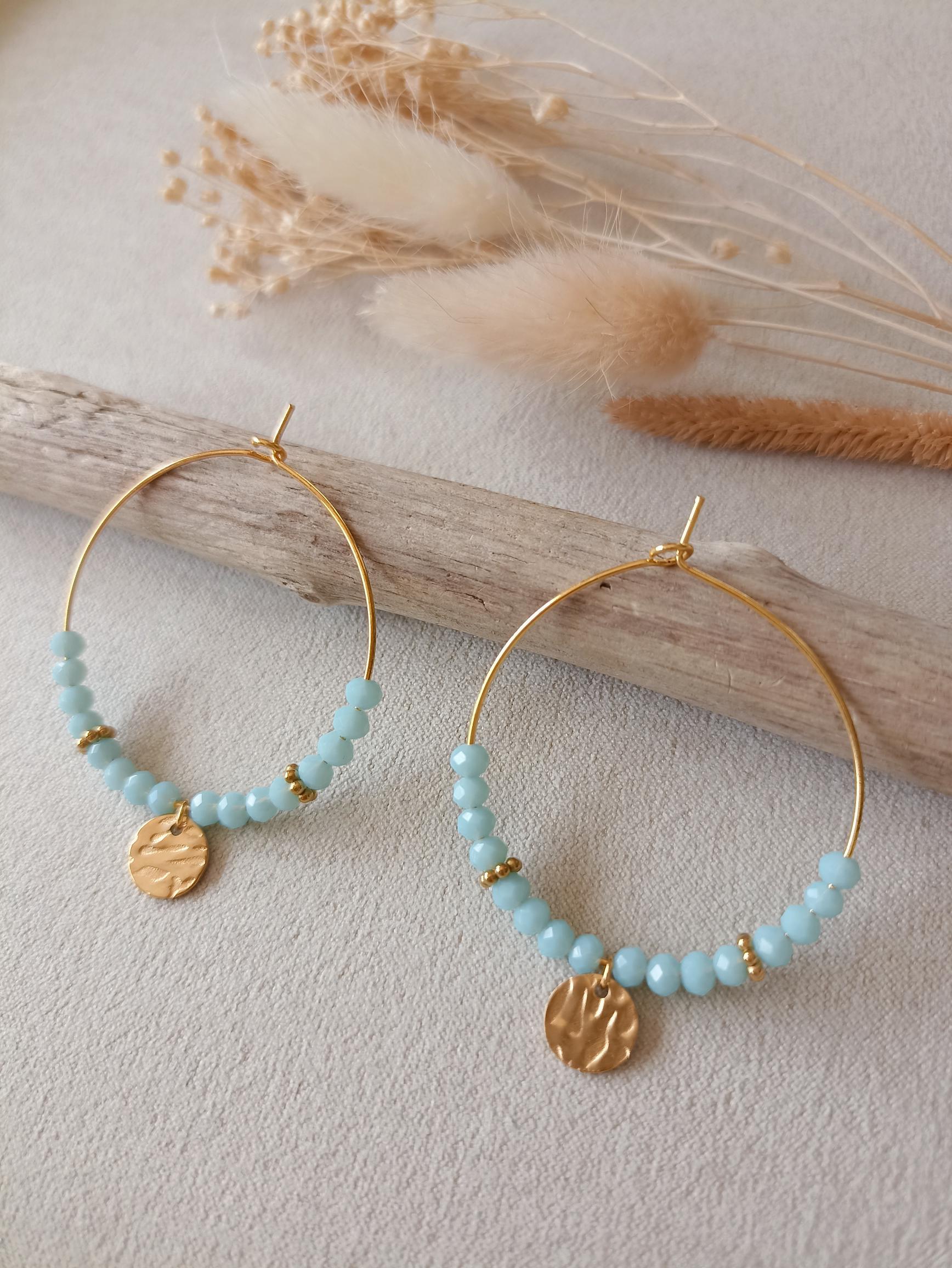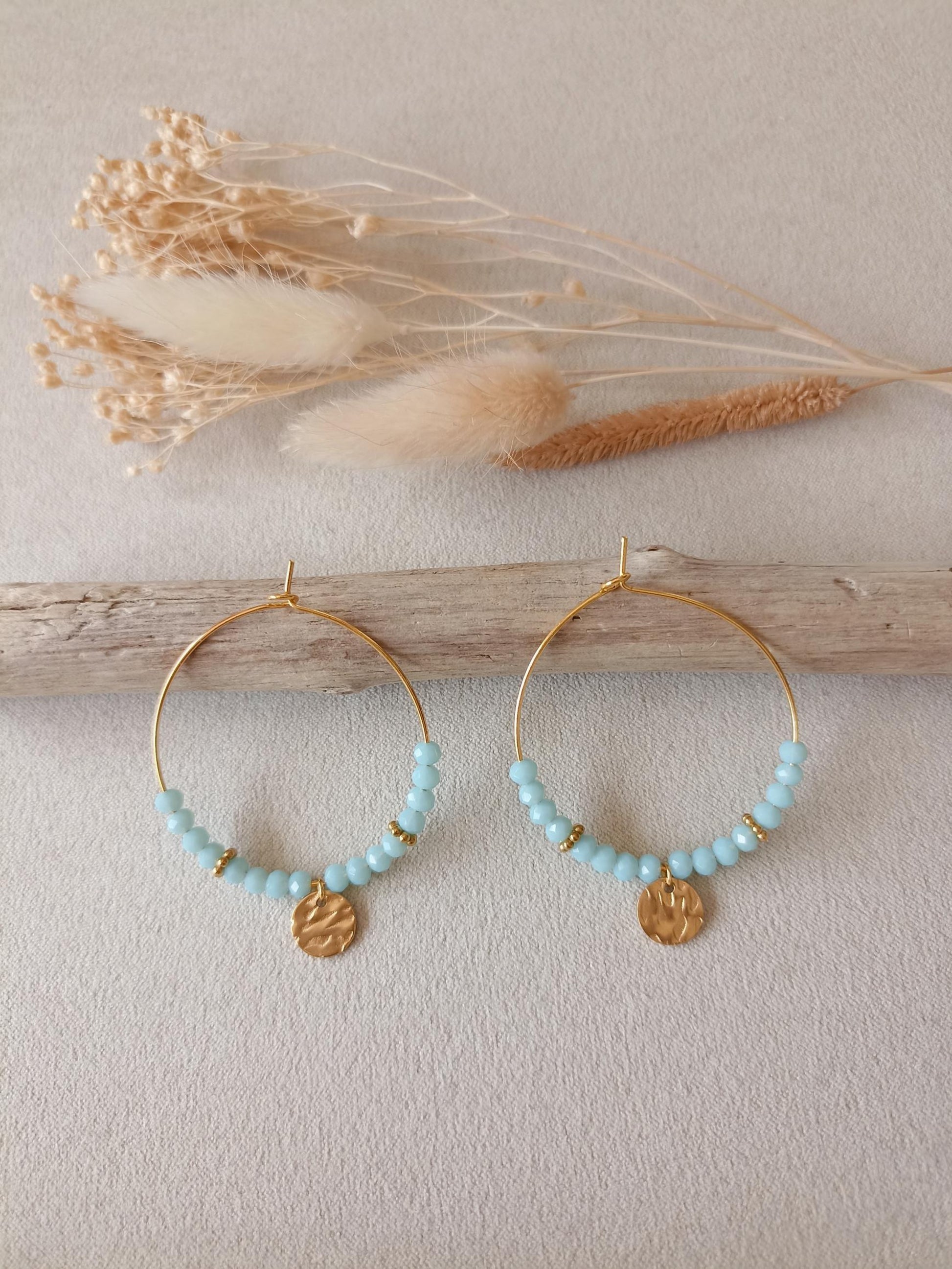 Ajoutez une touche de fraîcheur à votre style avec notre paire de boucles d'oreilles SOFIA, composé de perles vertes éclatantes, accentuées par des perles en acier inoxydable, au centre une breloque martelée incarne l'élégance et la modernité.