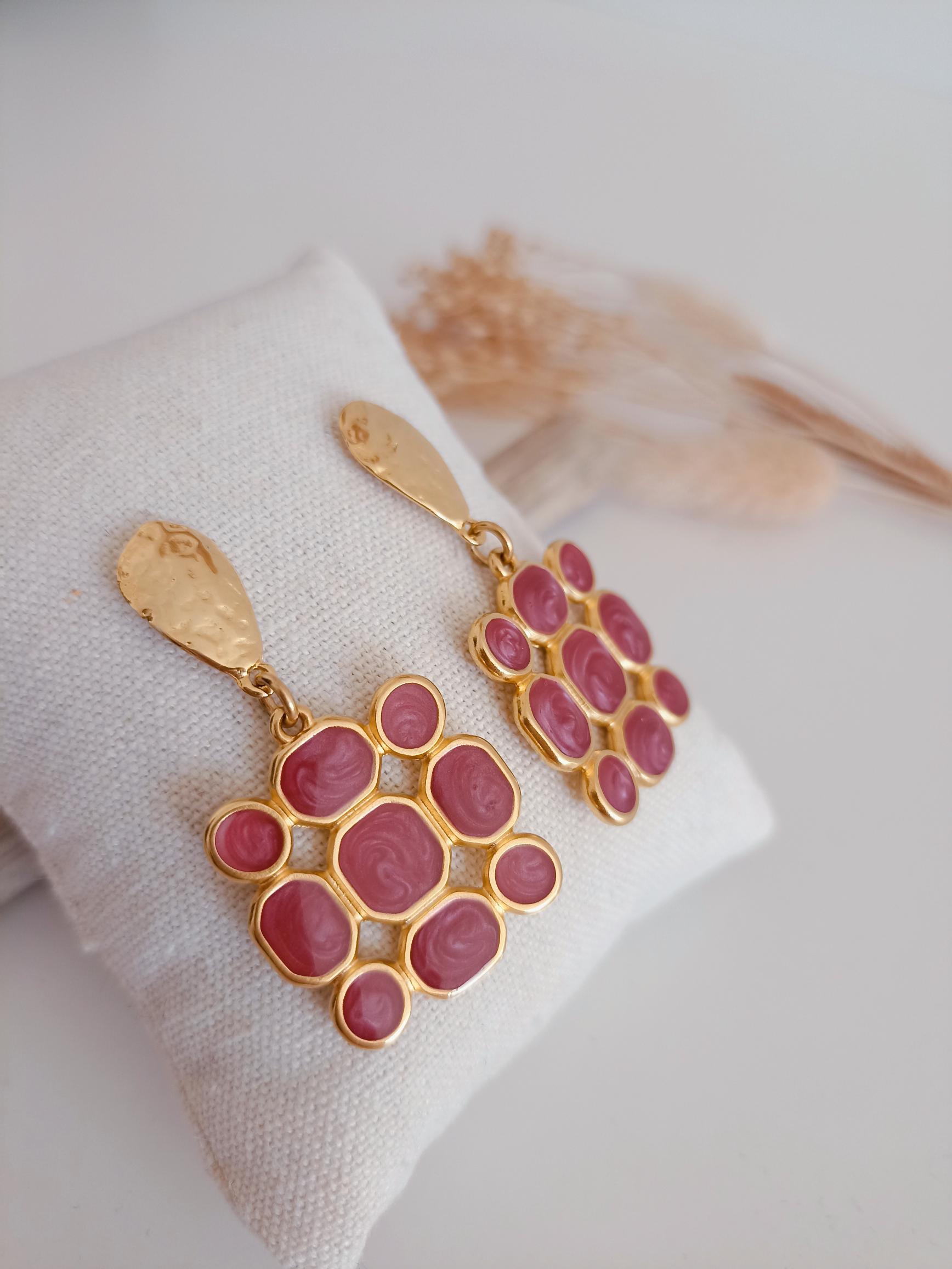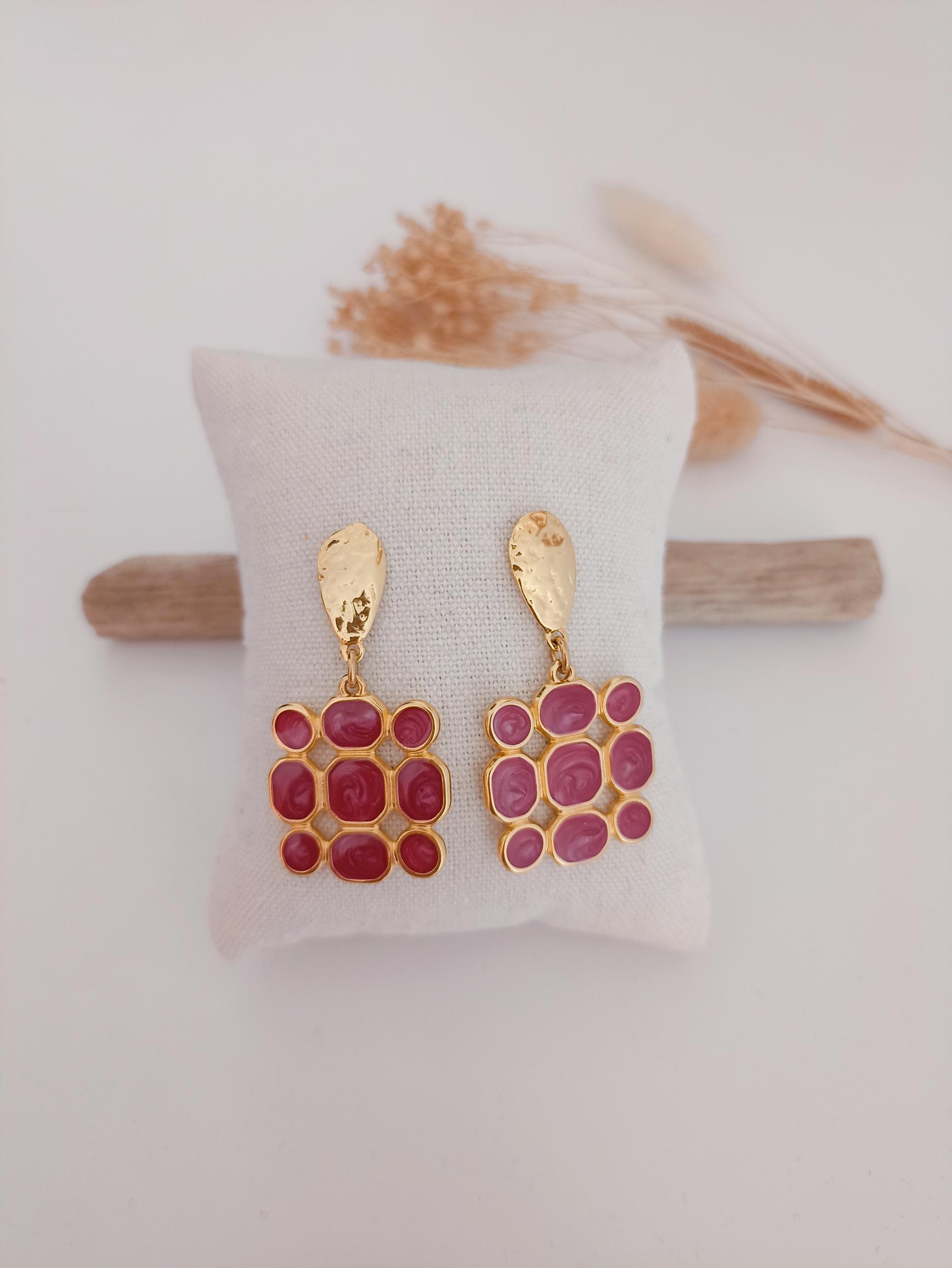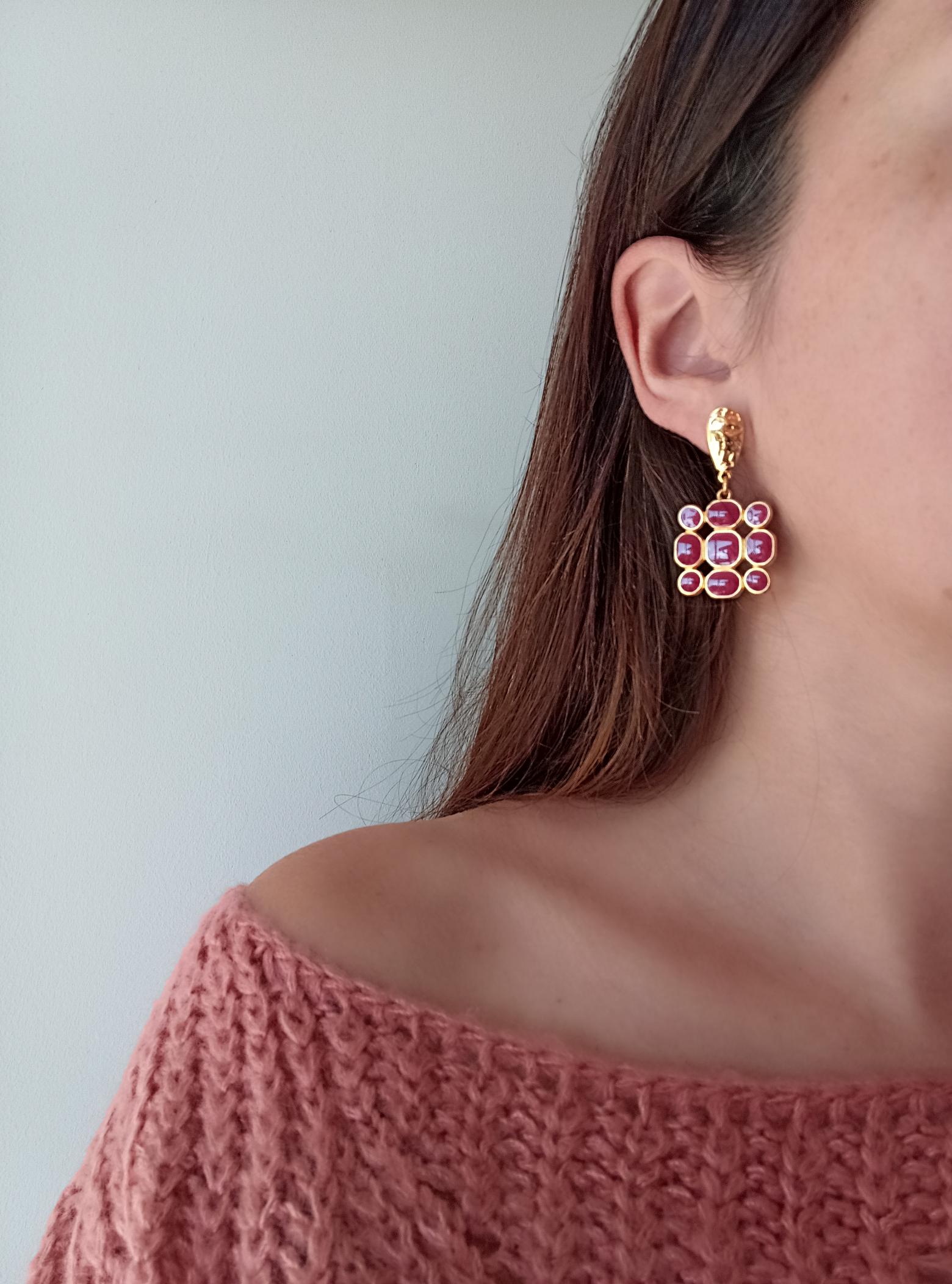 Découvrez cette élégante paire de boucles d'oreilles, agrémentée d'un pendentif mosaïques en résine époxy de couleur prune. Parfaites pour illuminer vos looks, ces boucles d'oreilles sont le choix idéal pour celles qui recherchent un accessoire à la fois chic et distinctif. Laissez-vous séduire par leur allure glamour et contemporaine !