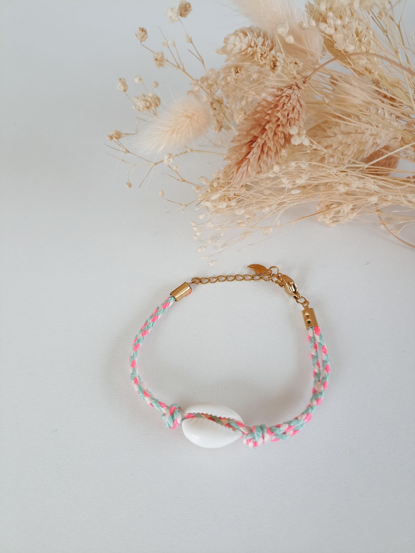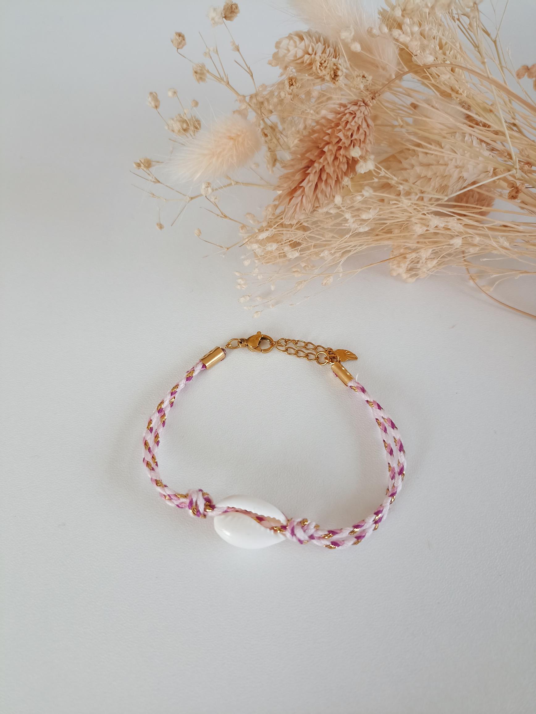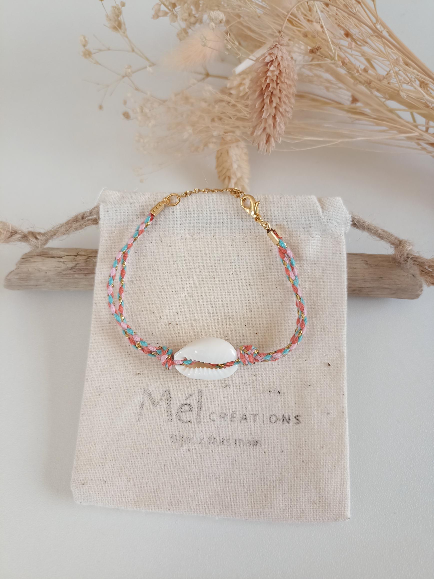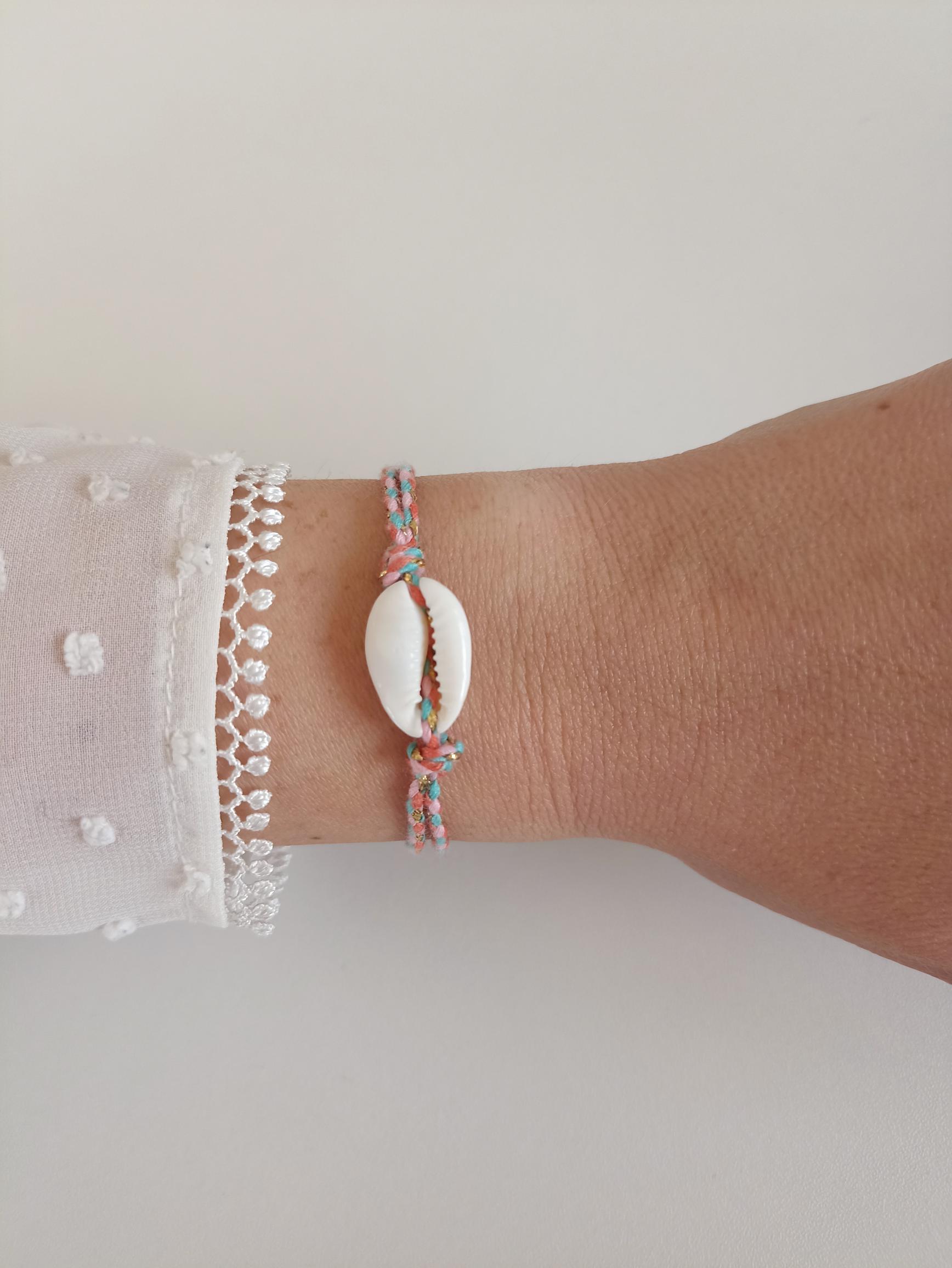 Matière : Cordon en coton, Acier inoxydable et coquillage cauri