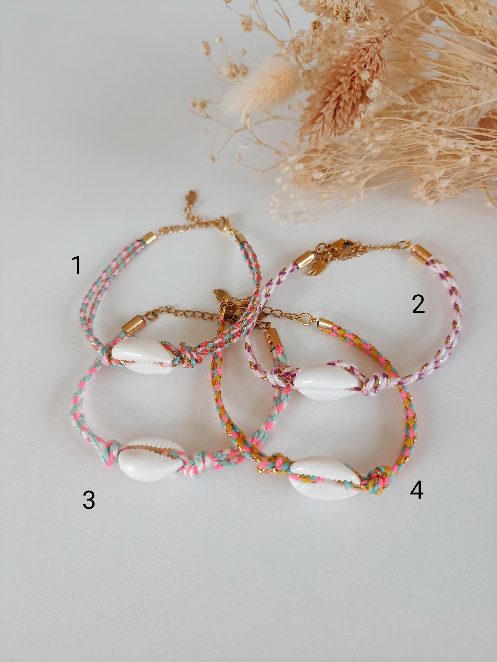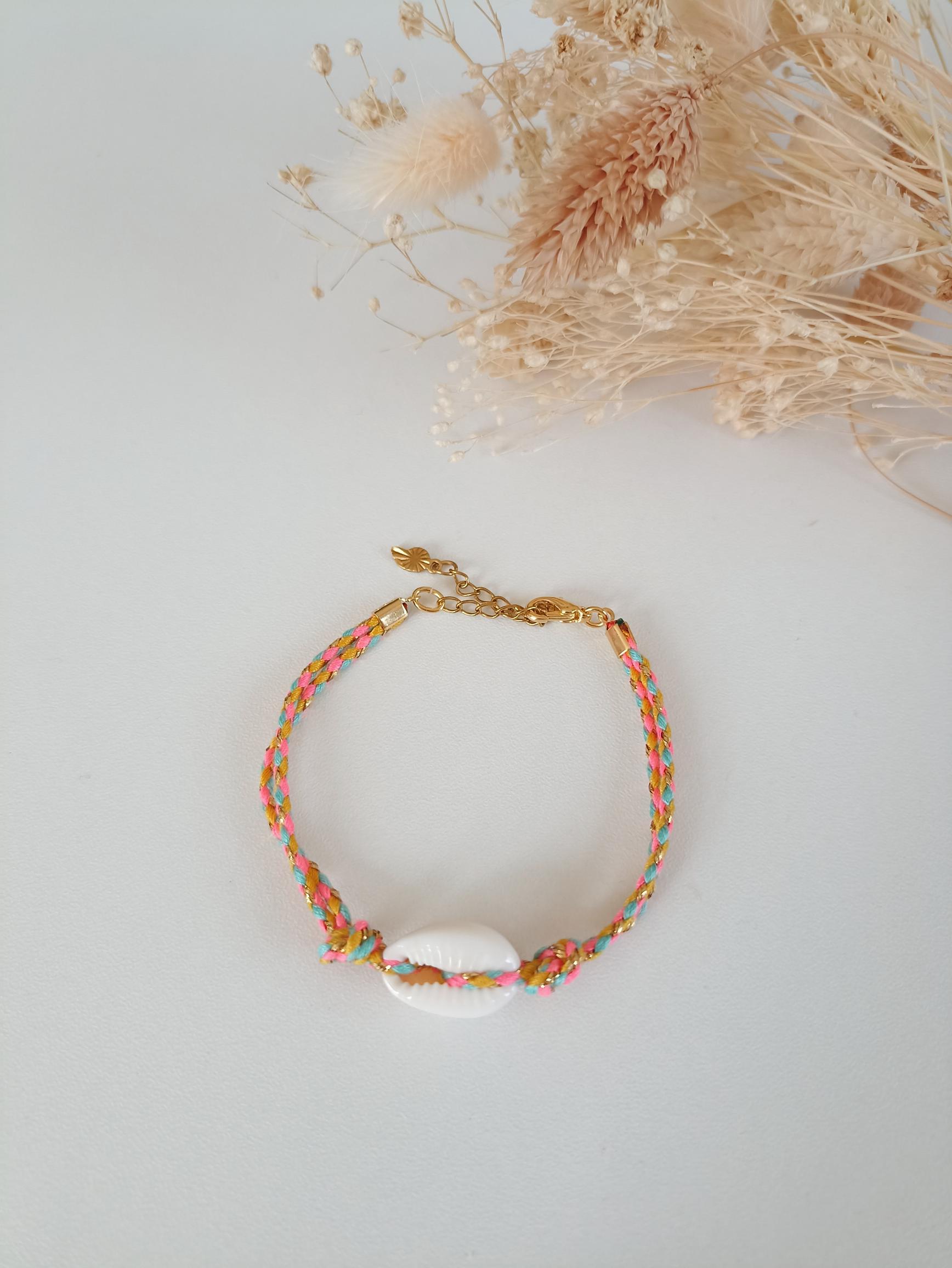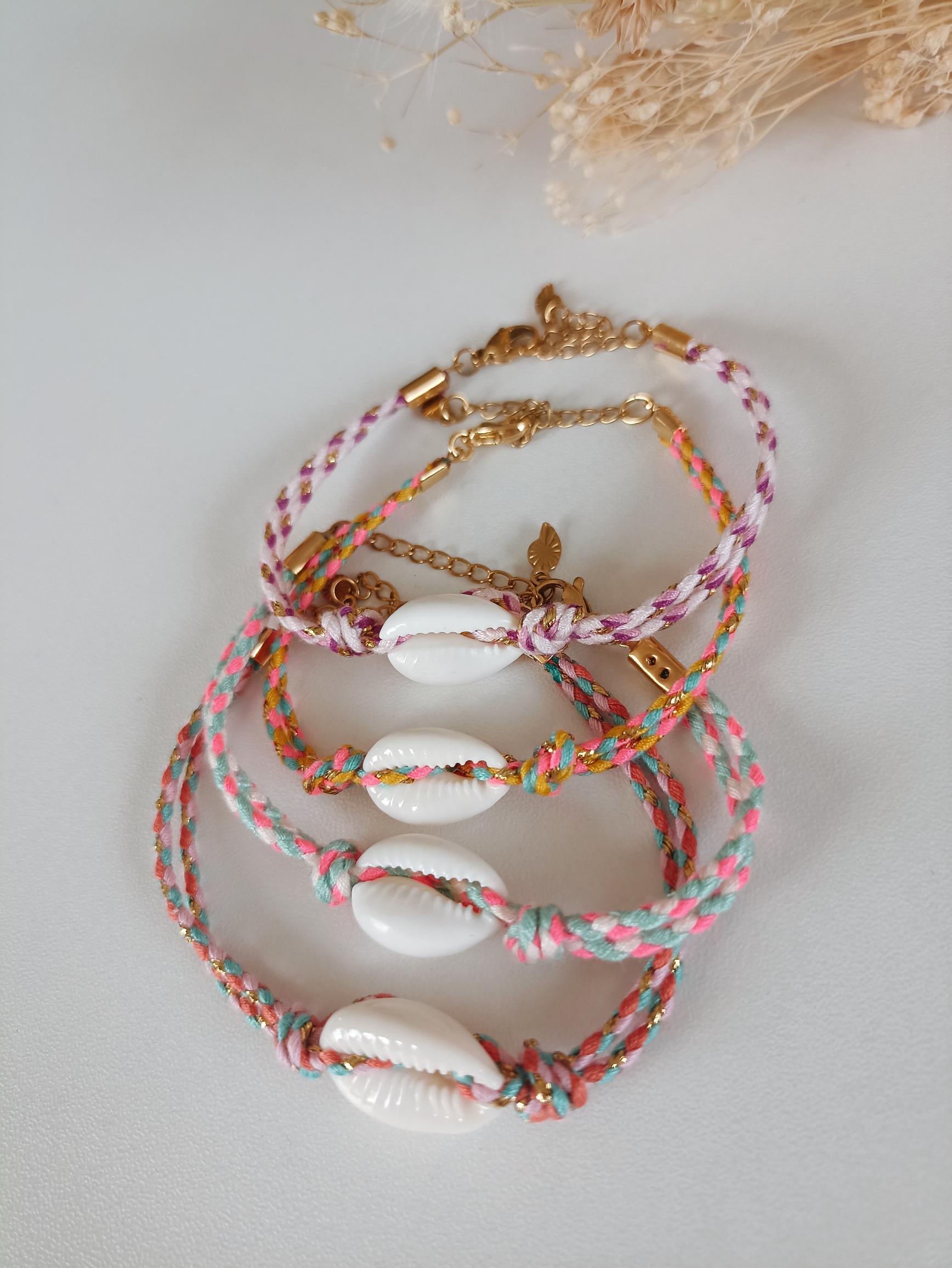 Laissez-vous séduire par ces bracelets en cordon tressé. Son coquillage central apporte une touche d'évasion, tandis que sa chaîne d'extension en acier inoxydable garantit un ajustement parfait. Un bijou bohème-chic, à porter au quotidien ou en vacances.